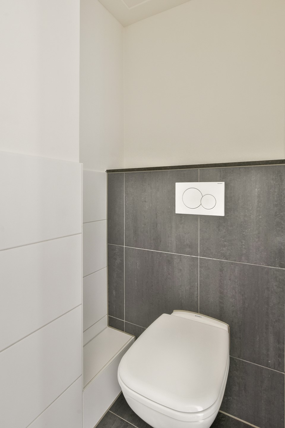 Via de hal zijn beide slaapkamers bereikbaar. De grootste slaapkamer ligt aan de voorzijde van de woning, terwijl de tweede slaapkamer zich aan de achterzijde bevindt. De badkamer is voorzien van een inloopdouche, ligbad en dubbele wastafel. Daarnaast is er een separaat toilet aanwezig in de hal. Via de interne trap kom je op het dakterras.