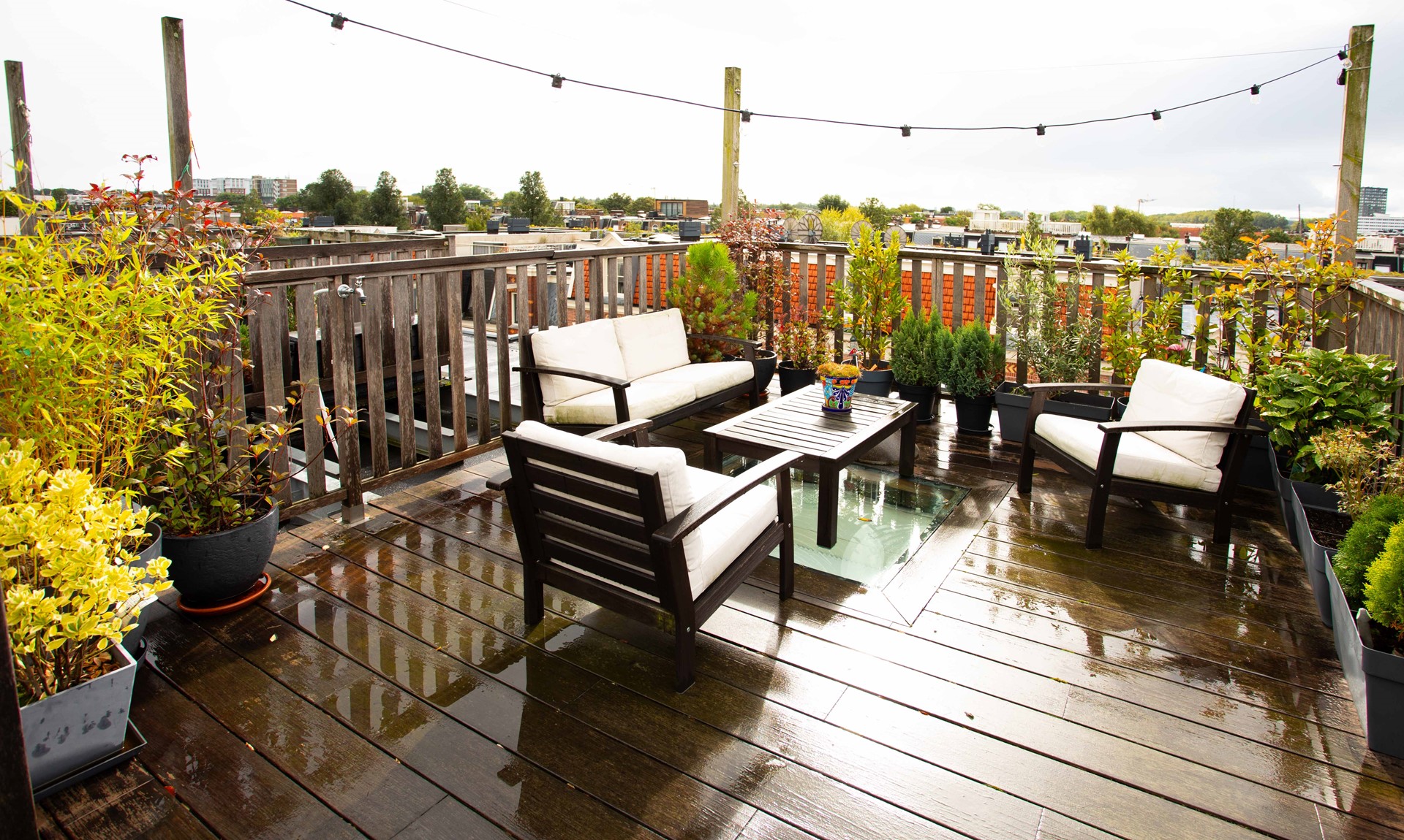 Tot slot is er een waanzinnig terras, gelegen op het dak, waar je een panoramisch uitzicht hebt van 360 graden over de stad.
