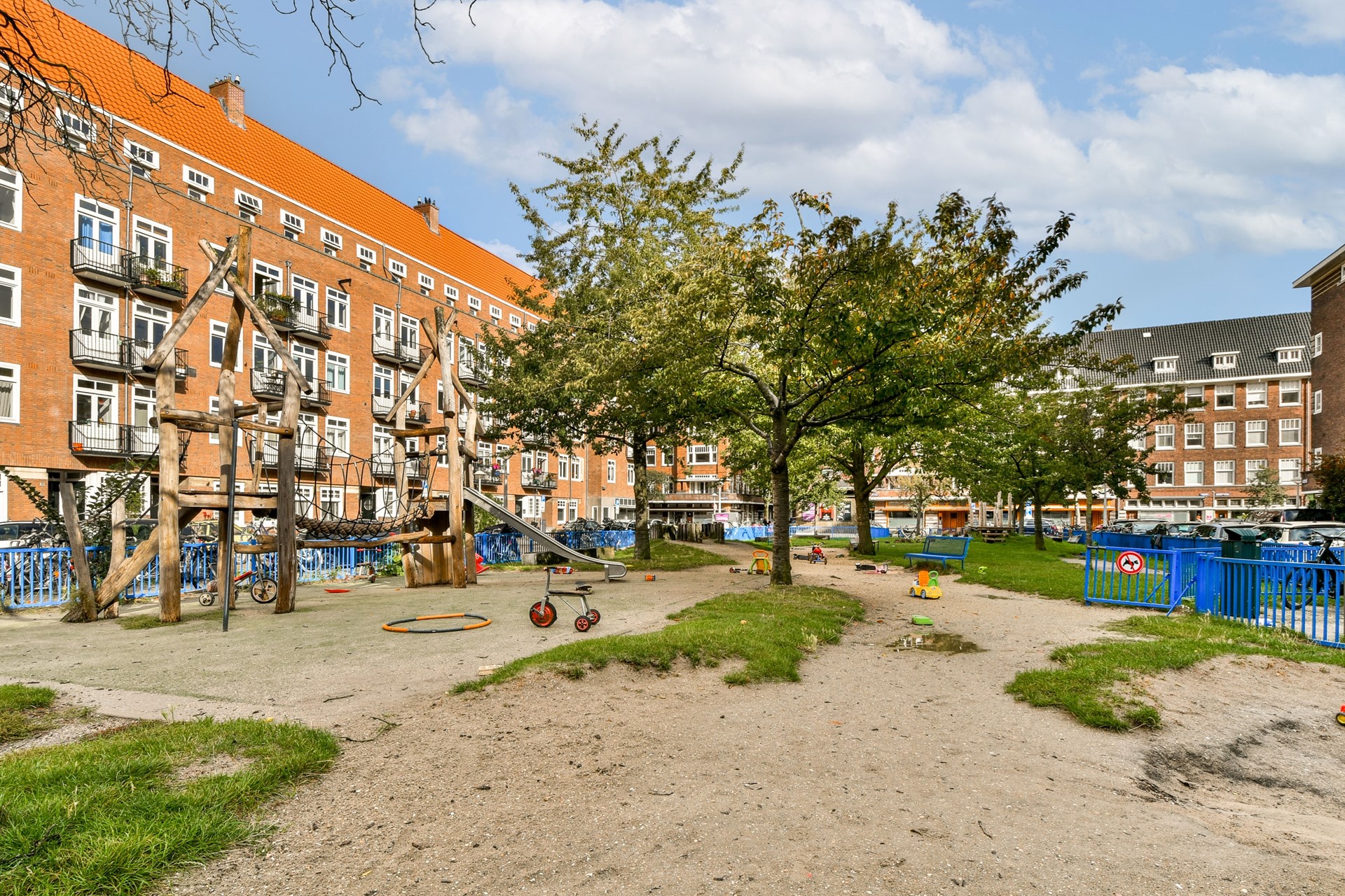 Het appartement ligt in een rustige straat, maar alle voorzieningen zijn lopend eenvoudig te bereiken. De Sloterkade en het Hoofddorpplein liggen vlakbij. De buurt biedt een breed aanbod aan winkels, supermarkten en horecagelegenheden, van gezellige cafés tot restaurants langs het water. Het Vondelpark is op loopafstand en ideaal voor ontspanning en sport, terwijl ook het Amsterdamse Bos snel te bereiken is. Voor de dagelijkse boodschappen vind je supermarkten zoals Albert Heijn en diverse speciaalzaken om de hoek. De verbindingen zijn uitstekend: trams en bussen richting het centrum en station Lelylaan stoppen dichtbij, en met de auto zit je binnen enkele minuten op de ringweg A10.