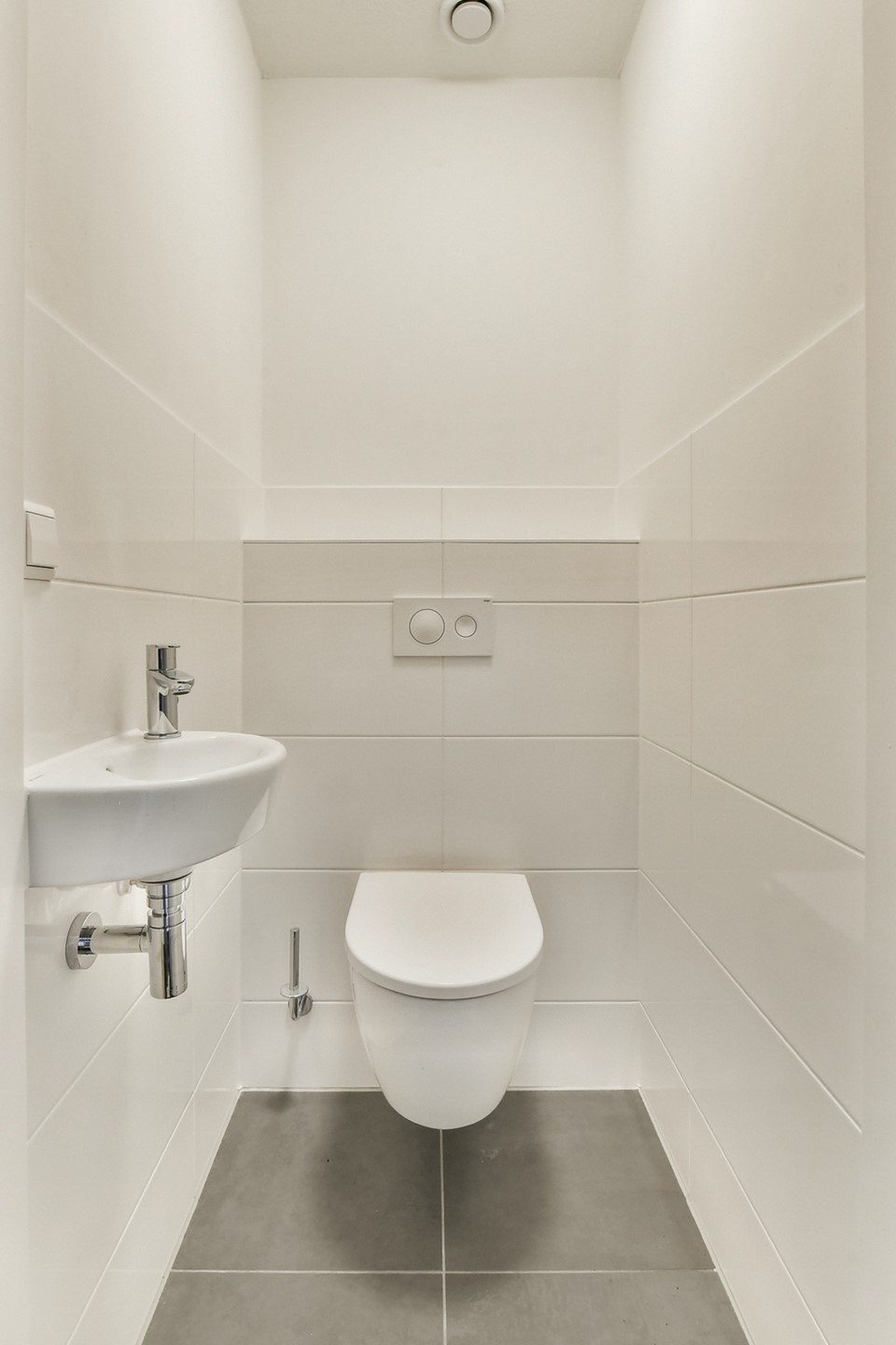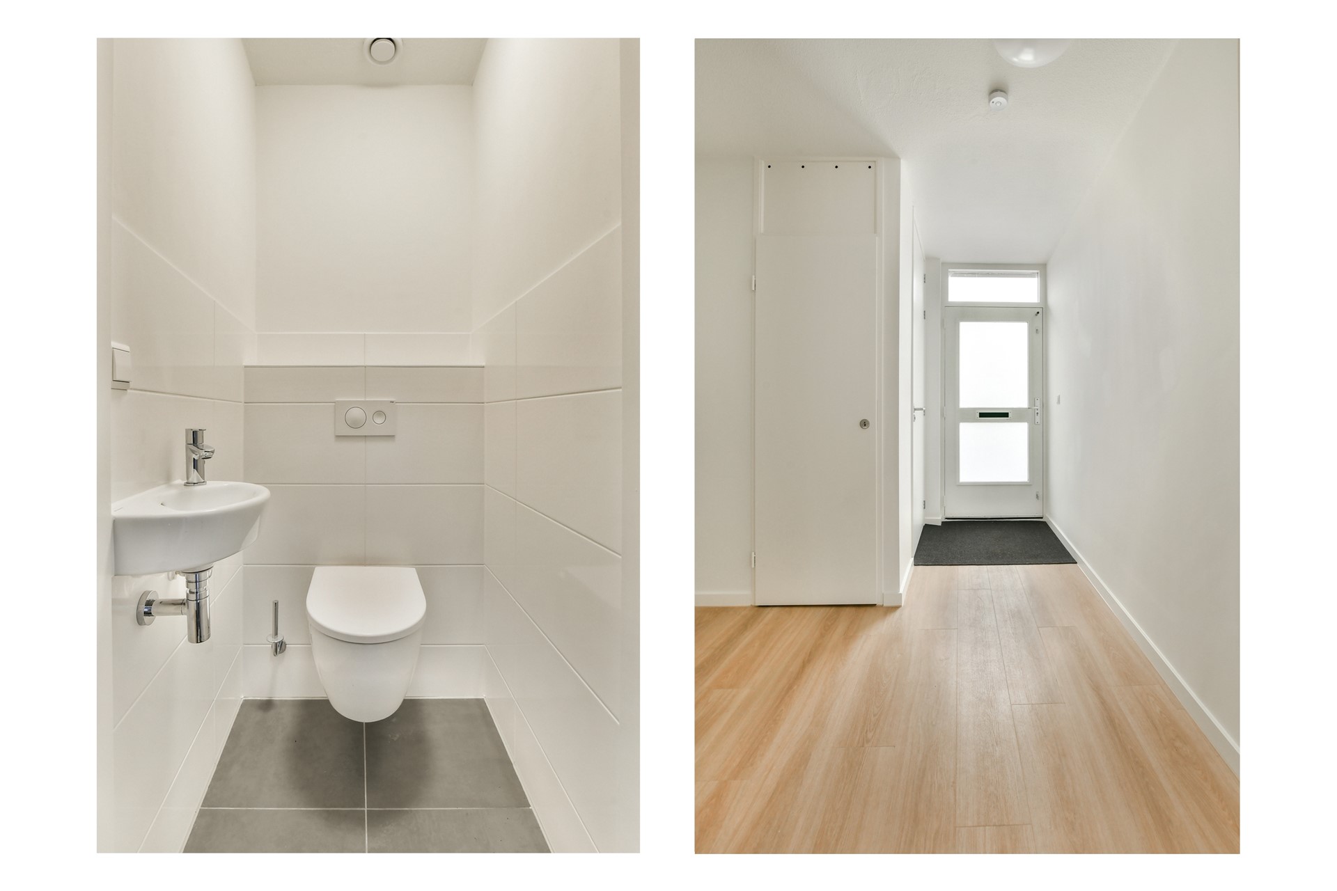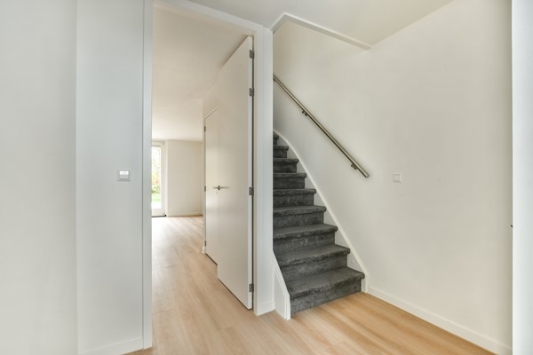 Upon entering, you arrive in the hallway, which gives access to the meter cupboard, a separate toilet, and the staircase to the first floor.