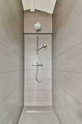Entrance via the communal staircase on the third floor. The living room is at the front and features a beautiful cabinet with a built-in wine cooler. At the rear is the kitchen equipped with a built-in coffee machine, dishwasher, oven, gas stove and refrigerator. French doors lead to the balcony. Via the internal staircase you reach the fourth floor. At the rear is the master bedroom with airconditioning and en-suite bathroom. The bathroom features a bathtub, walk-in shower and washbasin with vanity unit. At the front is the second bedroom. On the landing there is a separate toilet and a separate space with the washing machine connection.