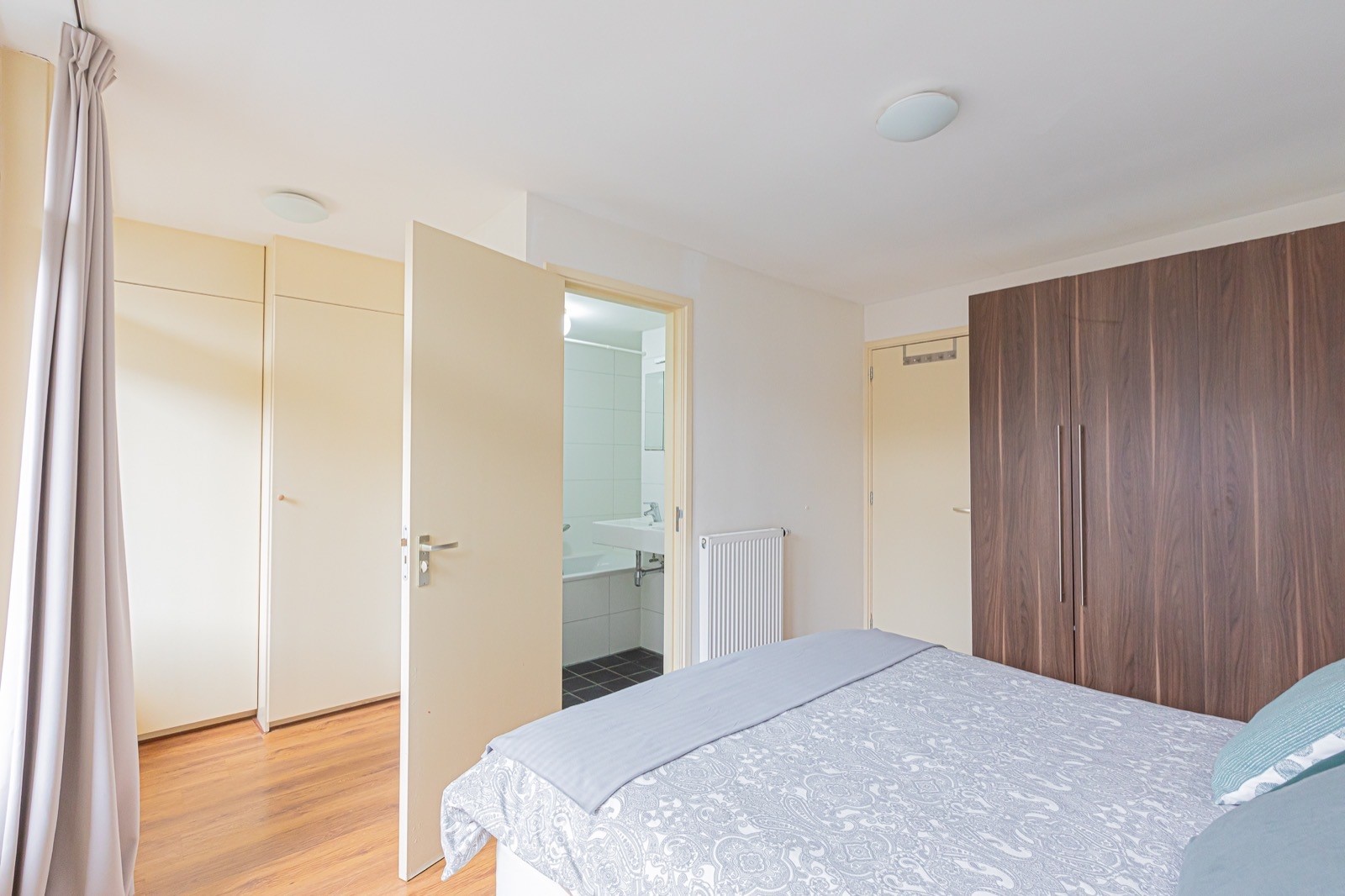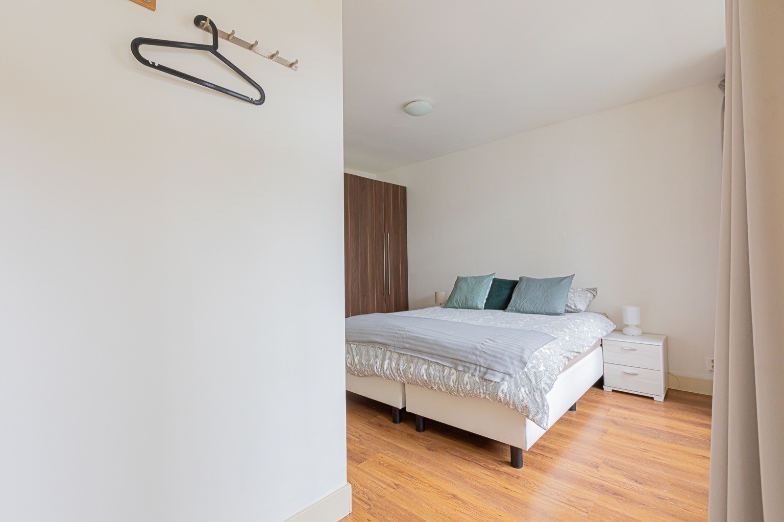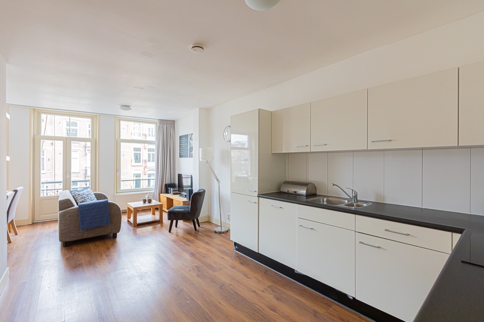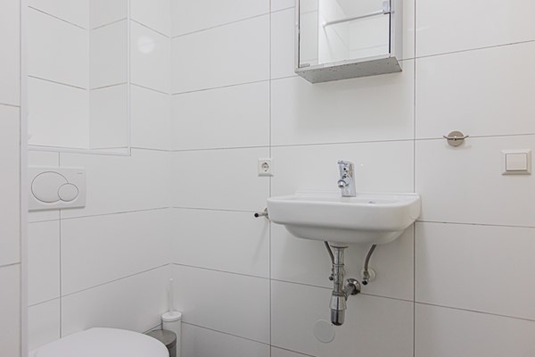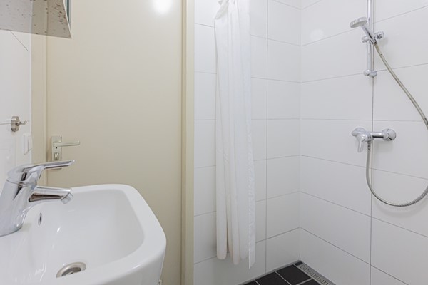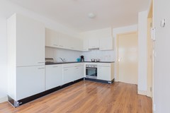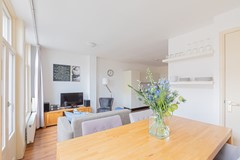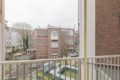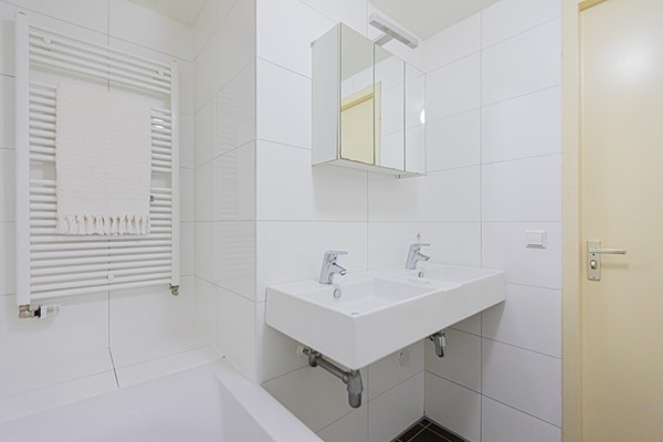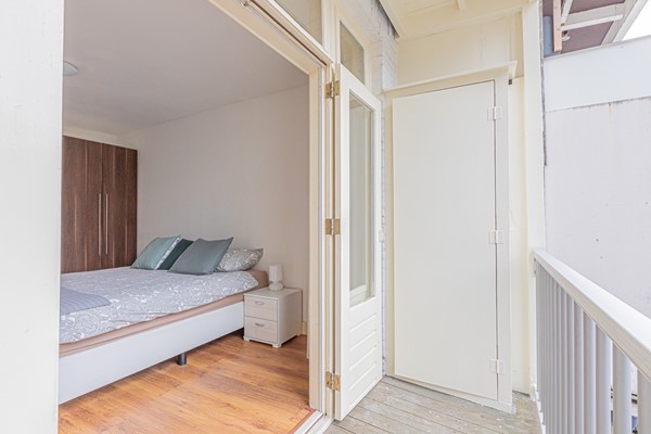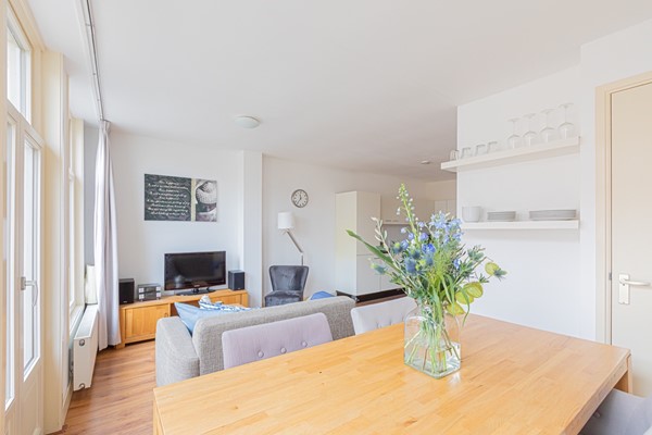 Entrance via the communal staircase on the second floor. The living room with fully equipped open kitchen is located at the front overlooking the Hugo de Grootplein. There are two bathrooms, the first with a shower and the second with a bathtub. At the rear is the quiet bedroom with double bed and wardrobe and access to the balcony.