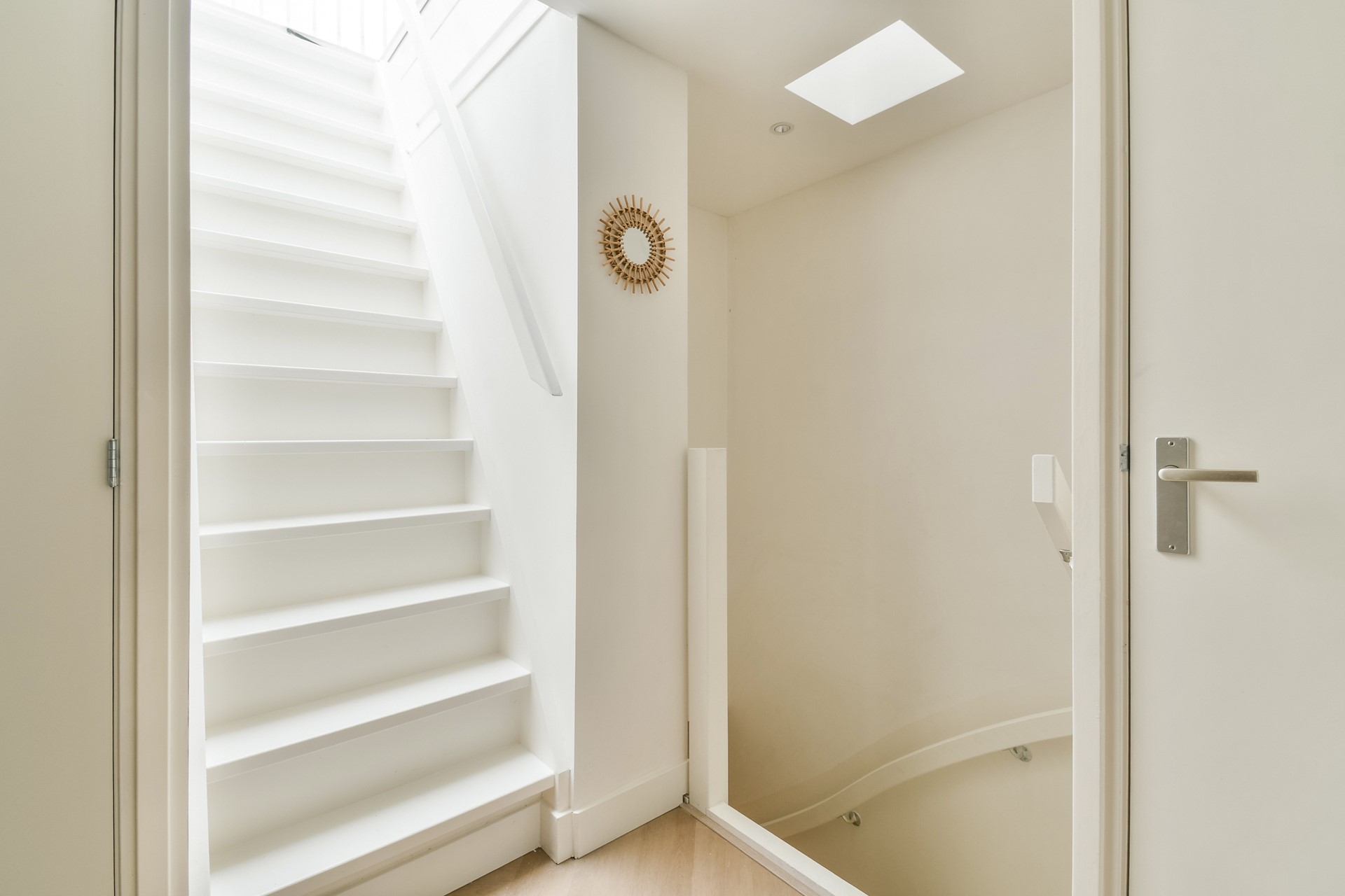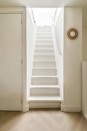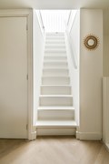The entrance on the third floor is accessed via the communal staircase. An internal staircase leads to the apartment on the fourth floor.