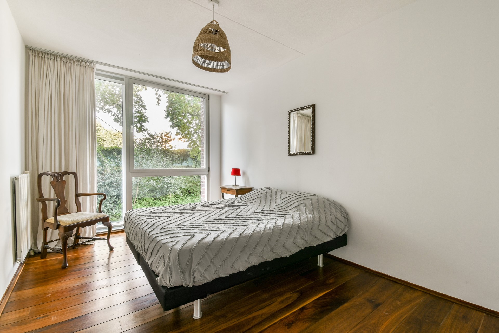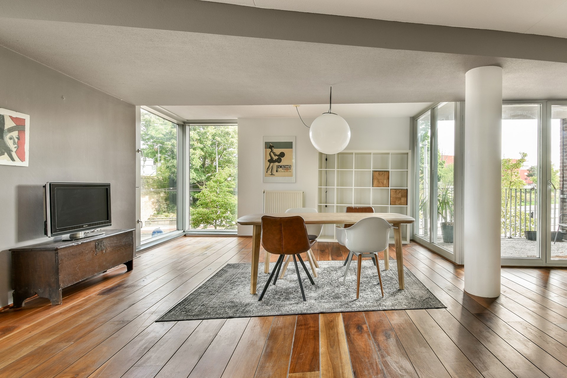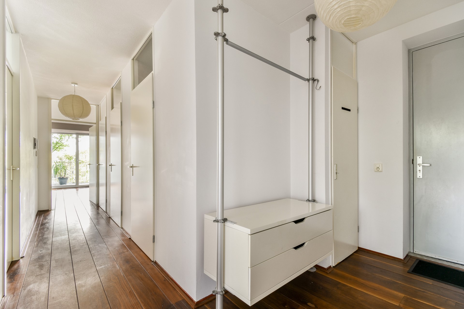 Upon entering, you step into the hallway with access to all rooms. The bright, spacious living room is located at the front of the property and has a characteristic layout with floor-to-ceiling windows. The covered balcony is also at the front, overlooking Zeeburgerdijk and the water. The living room provides enough space for both a sitting and dining area, and thanks to the positioning of the apartment, there is always a beautiful view from the “point” of the property.