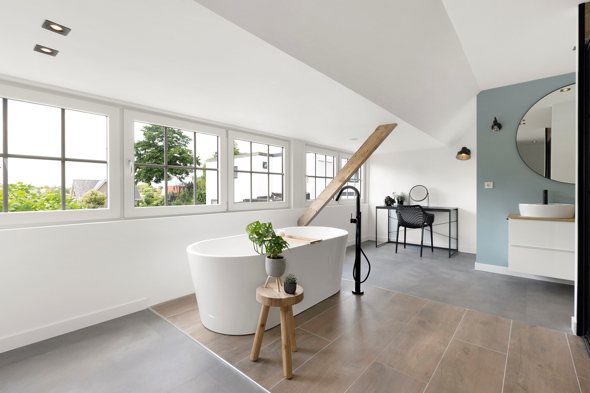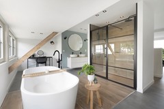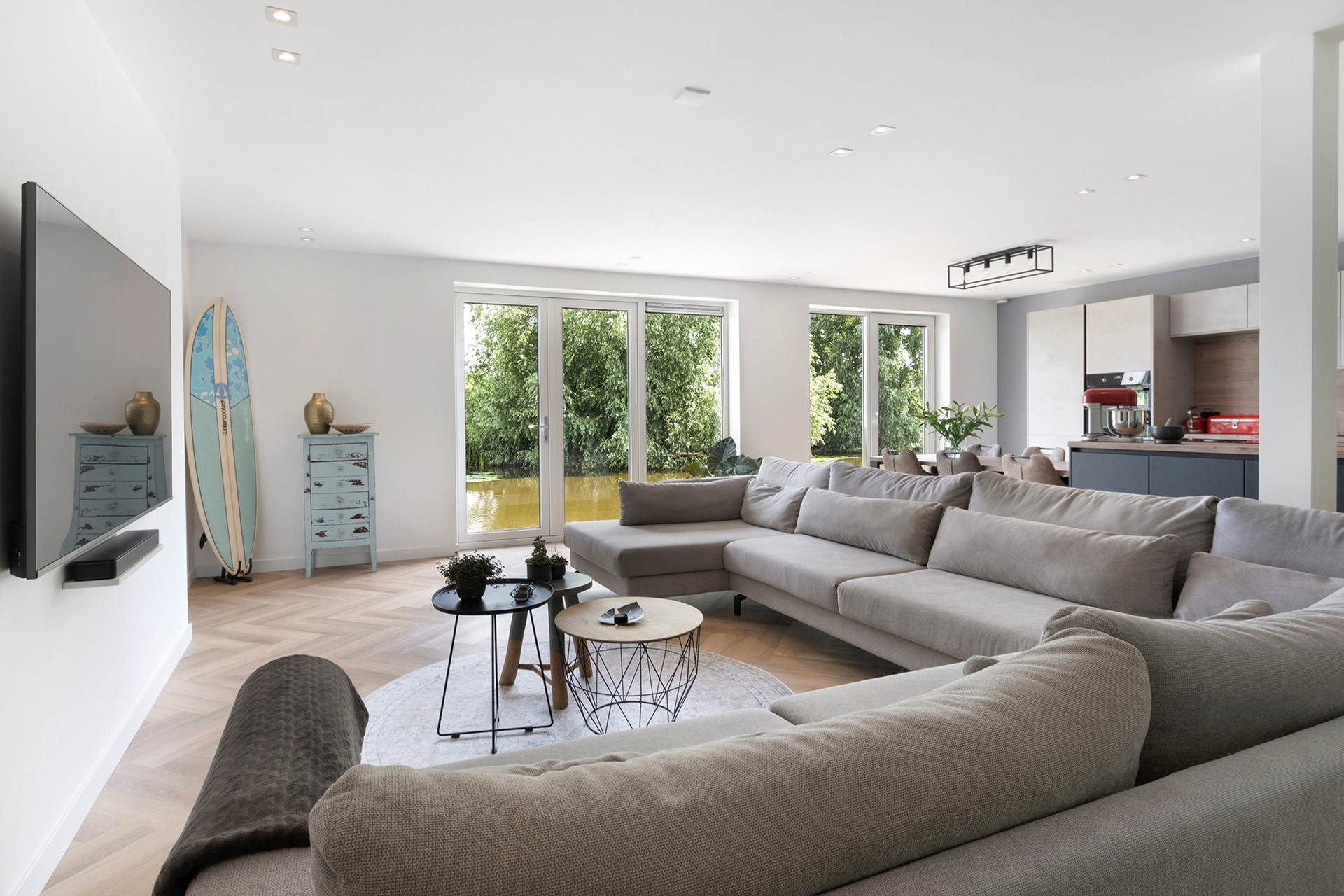 In a quiet location, overlooking water and nature, we offer this detached, fully renovated house of approx. 196 m² with three bedrooms and three bathrooms.
